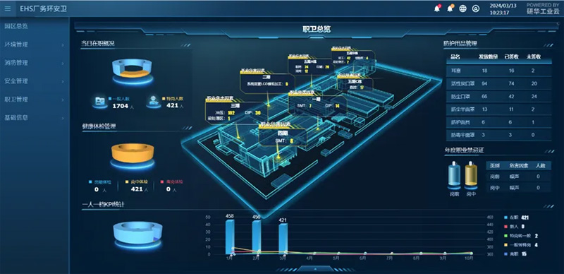 職衛(wèi)管理致力于員工的健康管理與勞動(dòng)保護(hù),為員工創(chuàng)造一個(gè)安全、健康的生產(chǎn)環(huán)境。其核心內(nèi)容涵蓋了一人一檔管理、特殊崗位體檢以及勞保用品的發(fā)放與穿戴防護(hù)等方面。研華EHS廠務(wù)環(huán)安衛(wèi)管理系統(tǒng)還對(duì)化學(xué)和物理等職業(yè)危害因素進(jìn)行深入識(shí)別與有效管理,以及AI監(jiān)測(cè)員工的防護(hù)品穿戴。