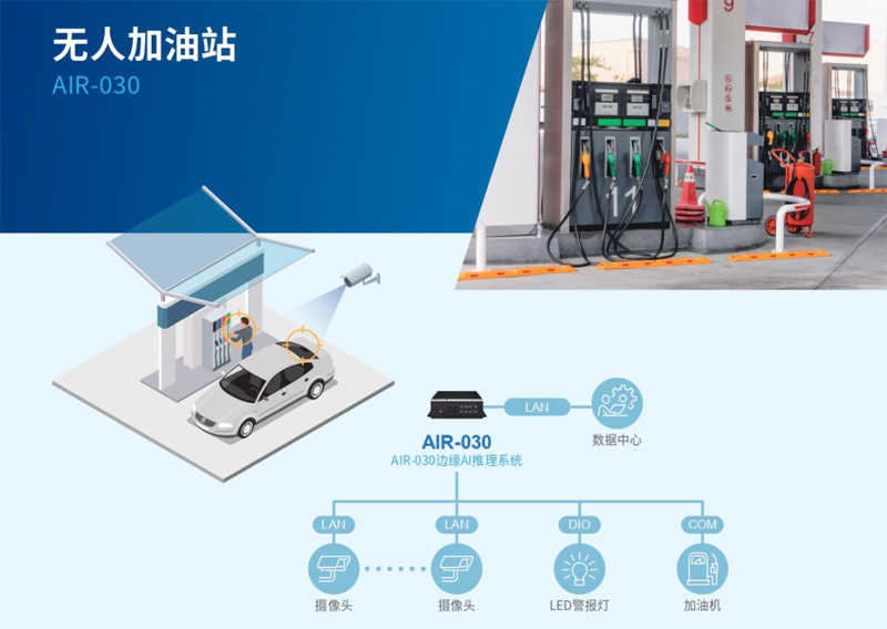 借助研華Edge AI SDK,該品牌SI合作伙伴在項(xiàng)目規(guī)劃期間幫助驗(yàn)證了AIR-030、AI容器、AI模型和庫的性能,大大節(jié)省了試錯(cuò)時(shí)間。此外,NVIDIA Jetson生態(tài)系統(tǒng)的豐富資源大大減少了開發(fā)時(shí)間,同時(shí)優(yōu)化了AI應(yīng)用。如此將以最低的成本,將尖端AI技術(shù)順利集成到其AI軟件中。AIR-030緊湊的尺寸可適應(yīng)幾乎任何加油站的設(shè)計(jì),其豐富的接口選項(xiàng)集,包括PoE、LAN和USB,可輕松連接各種類型的攝像頭。經(jīng)COM端口將加油機(jī)和監(jiān)控系統(tǒng)集成到AIR-030中,該品牌方可在燃油噴嘴拾取和返回時(shí)執(zhí)行AI分析,同時(shí)還可監(jiān)控安全隱患,如吸煙或燃油噴嘴使用不當(dāng)?shù)那闆r。檢測(cè)到危險(xiǎn)事件后,燃油供應(yīng)會(huì)自動(dòng)暫停,連接到AIR-030的警報(bào)LED也會(huì)亮起,提醒駕駛員注意。