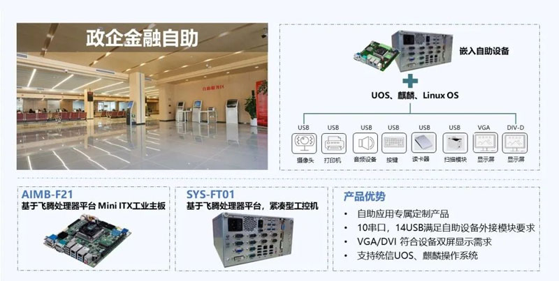 近期,研華國產(chǎn)芯產(chǎn)品系列新增重磅明星主板AIMB-F21,以飛騰FT-2000/4和D2000/8處理器為核心,具備高算力和豐富靈活的擴(kuò)展口,不論是金融自助設(shè)備、政務(wù)自助一體機(jī)、工業(yè)自動化、軌道交通自助設(shè)備還是公安系統(tǒng)等,AIMB-F21主板都能充分滿足需求,推動智慧城市全面高速發(fā)展。