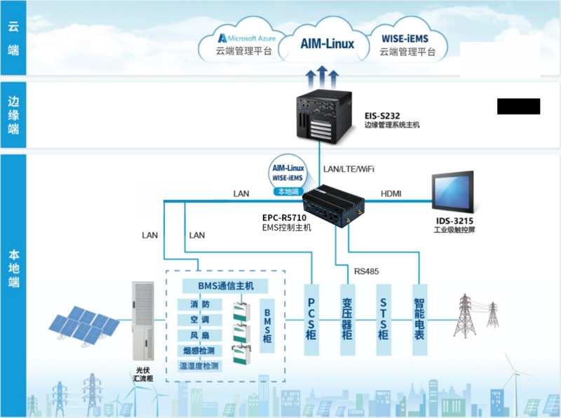 面向上述需求,研華提供貫穿了“端-邊-云”的“軟+硬”完整解決方案。其中,基于NXP I.MX 8M PLUS平臺EPC-R5710工控機作為EMS控制器,一方面直接負責儲能系統的控制策略,另一方面還監控系統運行中的故障異常,起到及時快速保護設備、保障安全性的重要作用。
