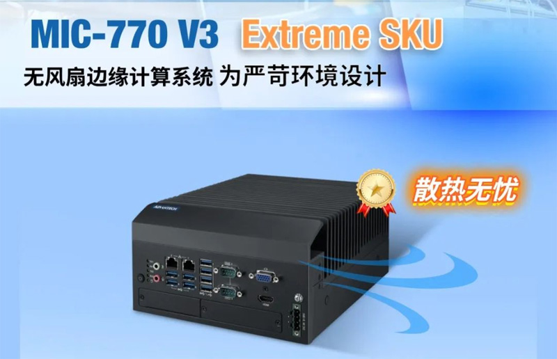 研華MIC-770 V3 系列 Extreme SKU 工控機機型: ① 加高機型,出色的散熱方案,無風扇設計; ② 在無風流的嚴苛工業場域下支持50℃高溫運行; ③ 通過研華的Flex I/O、iDoor和i-Module模組靈活擴展所需存儲與GPU方案; ④ 適用于各類高速數據處理、邊緣人工智能推理、深度學習等關鍵應用。