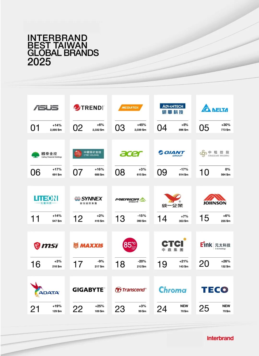 該評選由研究機構推動,并委由國際權威品牌顧問公司Interbrand進行鑒價。評估過程采用符合ISO 10668國際標準的品牌價值評估方法,綜合企業財務表現、品牌在決策中的角色,以及品牌長期經營強度等多項指標,從國際視角衡量企業的整體品牌價值與發展潛力。