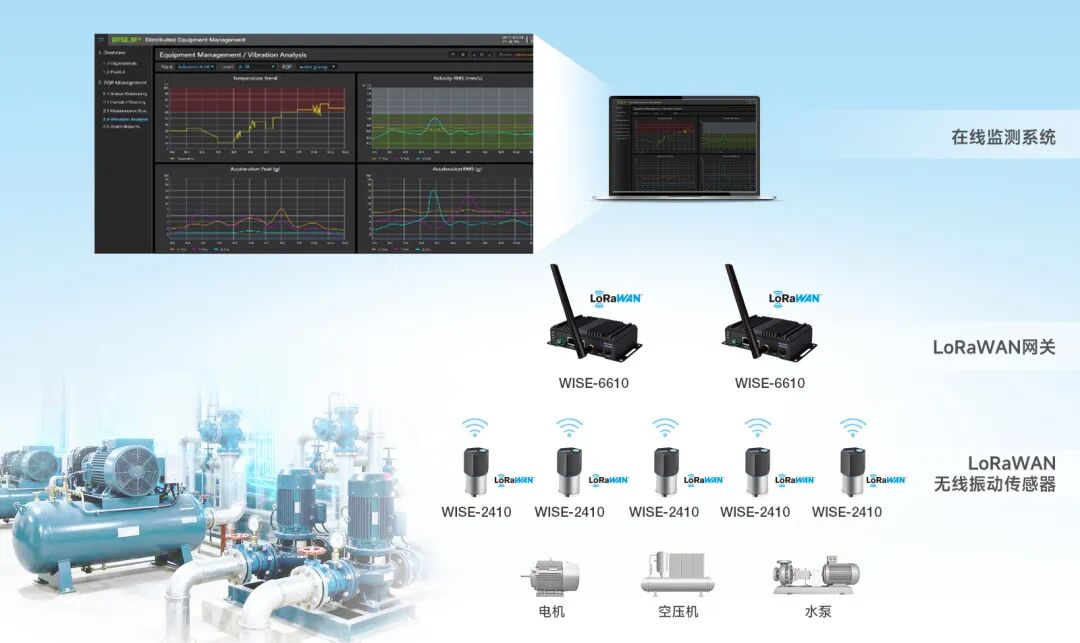 針對上述痛點,該樓宇部署研華設備振動監測方案,通過“傳感+網關+平臺”三層架構,構建覆蓋設備全生命周期的健康管理體系。
